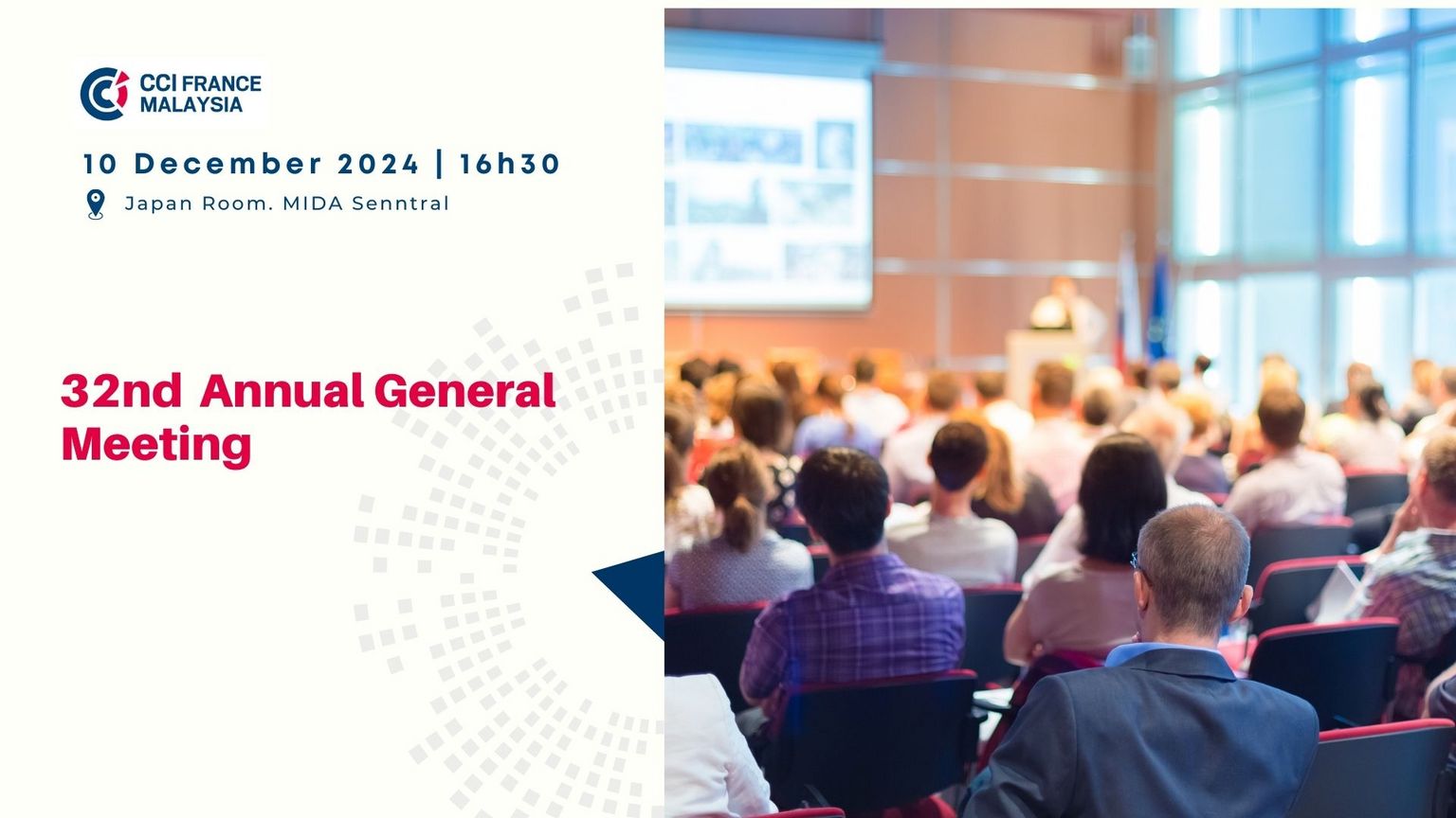 We are pleased to invite you to the 32nd Annual General Meeting of CCI France Malaysia, which will take place on :
