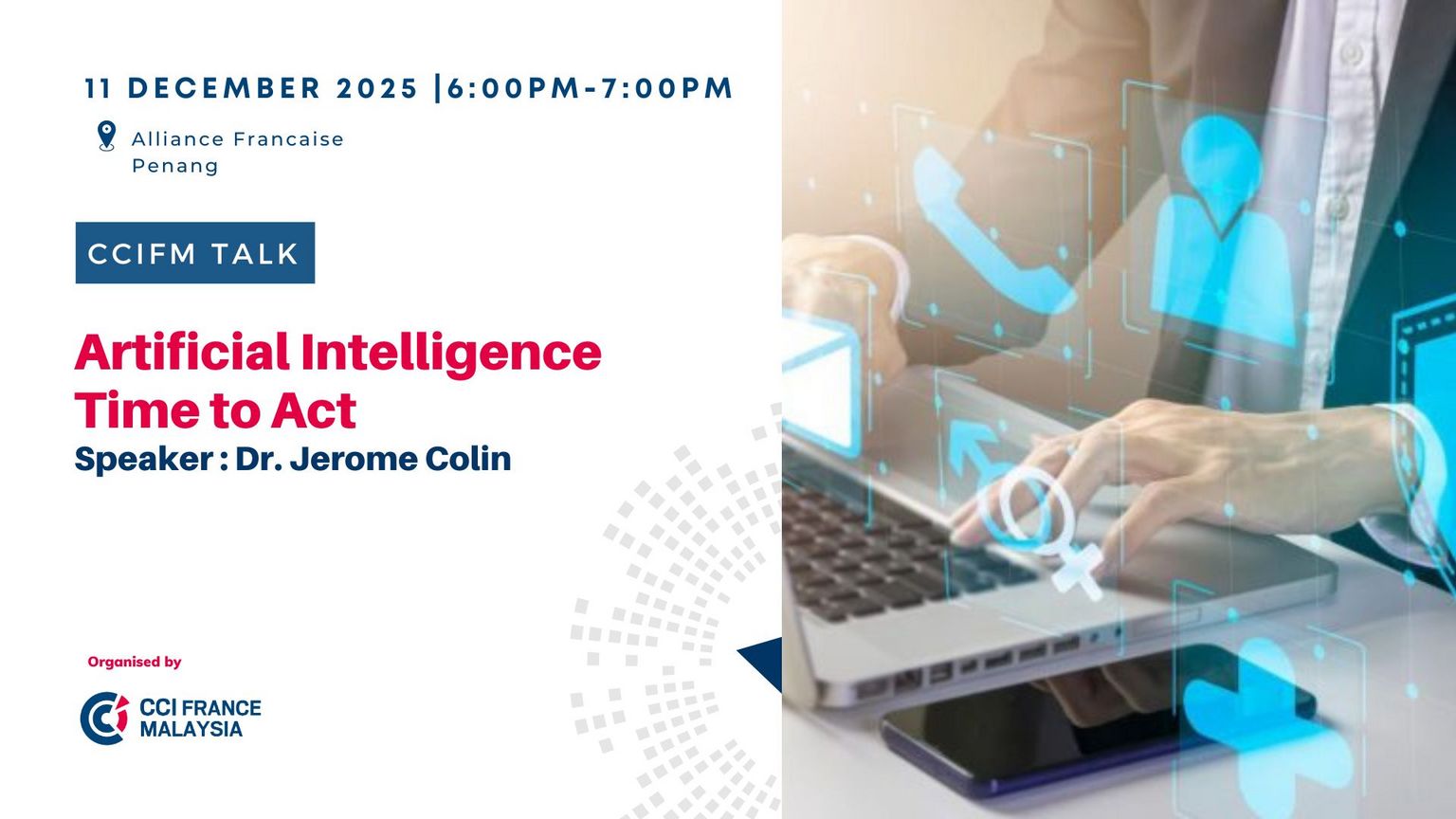 Calling all members in the northern region to join our talk on Artificial Intelligence: Time to Act by Dr. Jérôme Colin, where he will share practical insights on how AI is transforming industries and why organisations must move now to stay ahead.