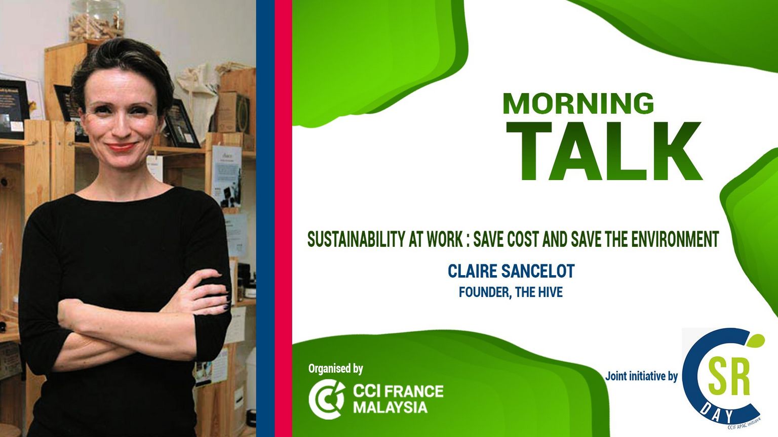 Ms. Claire Sancelot, the founder of The Hive and an advocate of Zero Waste Lifestyle. She would be would be able to help on ways to implement sustainable methods in everyday work life to work in an eco-friendly corporate environment.