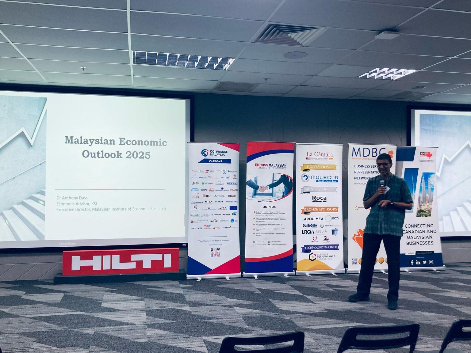 The Economic Outlook 2025 conference, held on 28th February 2025 at Hilti Asia IT Services, provided valuable insights into the economic landscape for the year ahead. Organized by the Swiss Chamber of Commerce in collaboration with CCIFM, the Canada Chamber of Commerce, Malaysia Dutch Business Council (MBDC), and Malaysia Spanish & Chamber Industry (La Camara), the conference addressed key economic trends and projections shaping the Malaysian economy in 2025.