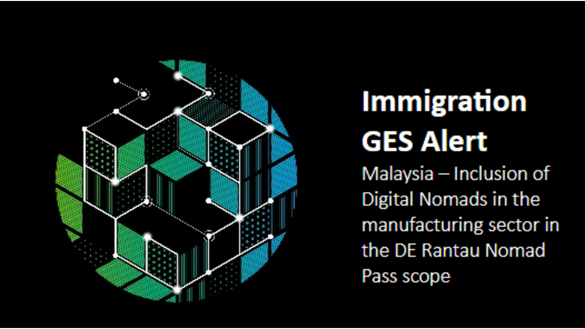 Immigration Alert – Malaysia – Inclusion of Digital Nomads in the Manufacturing Sector in the DE Rantau Nomad Pass Scope