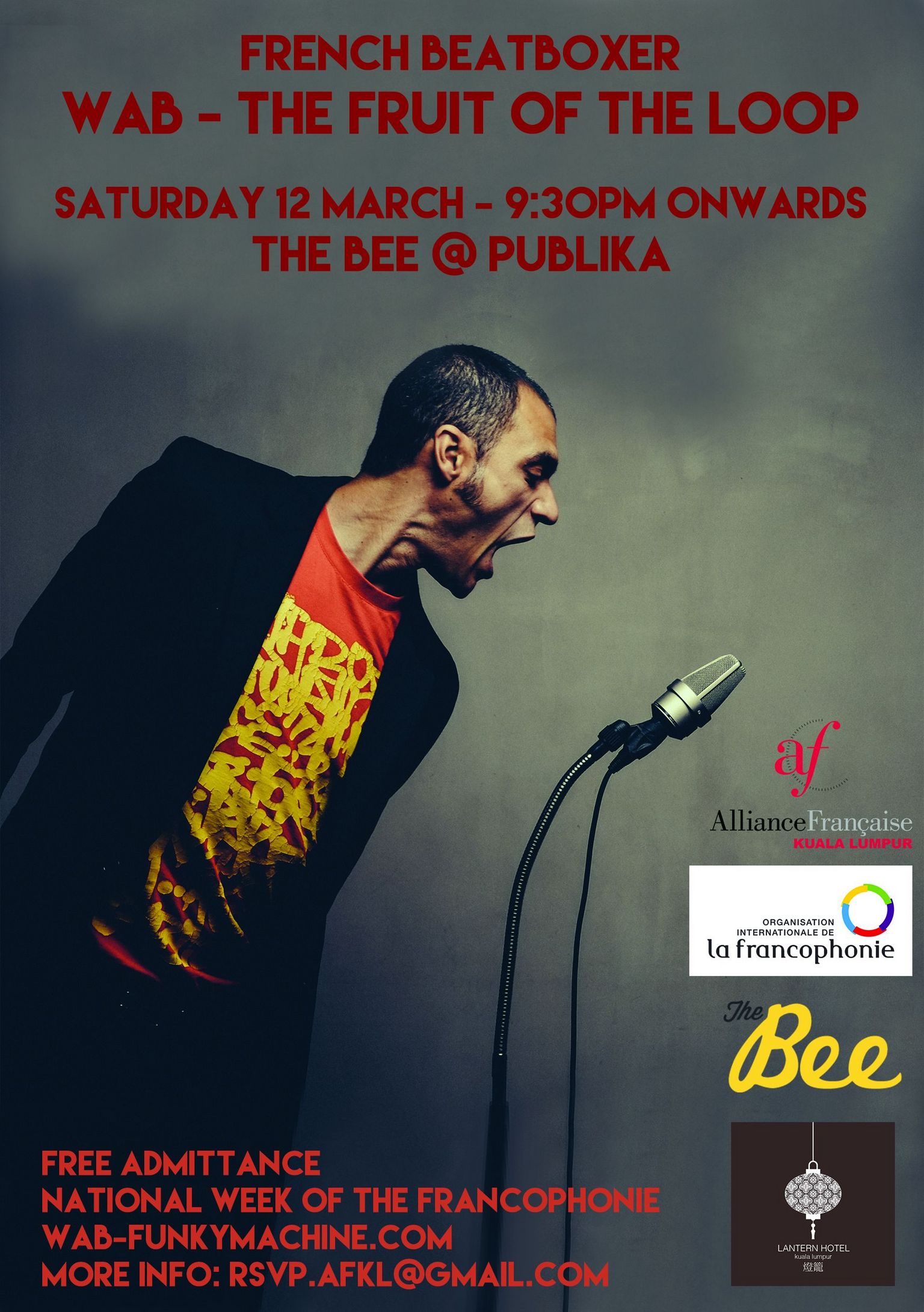 A l'occasion de la Semaine de la Francophonie, le Beatboxer Français WAB se produira à The Bee Restaurant le Samedi 12...